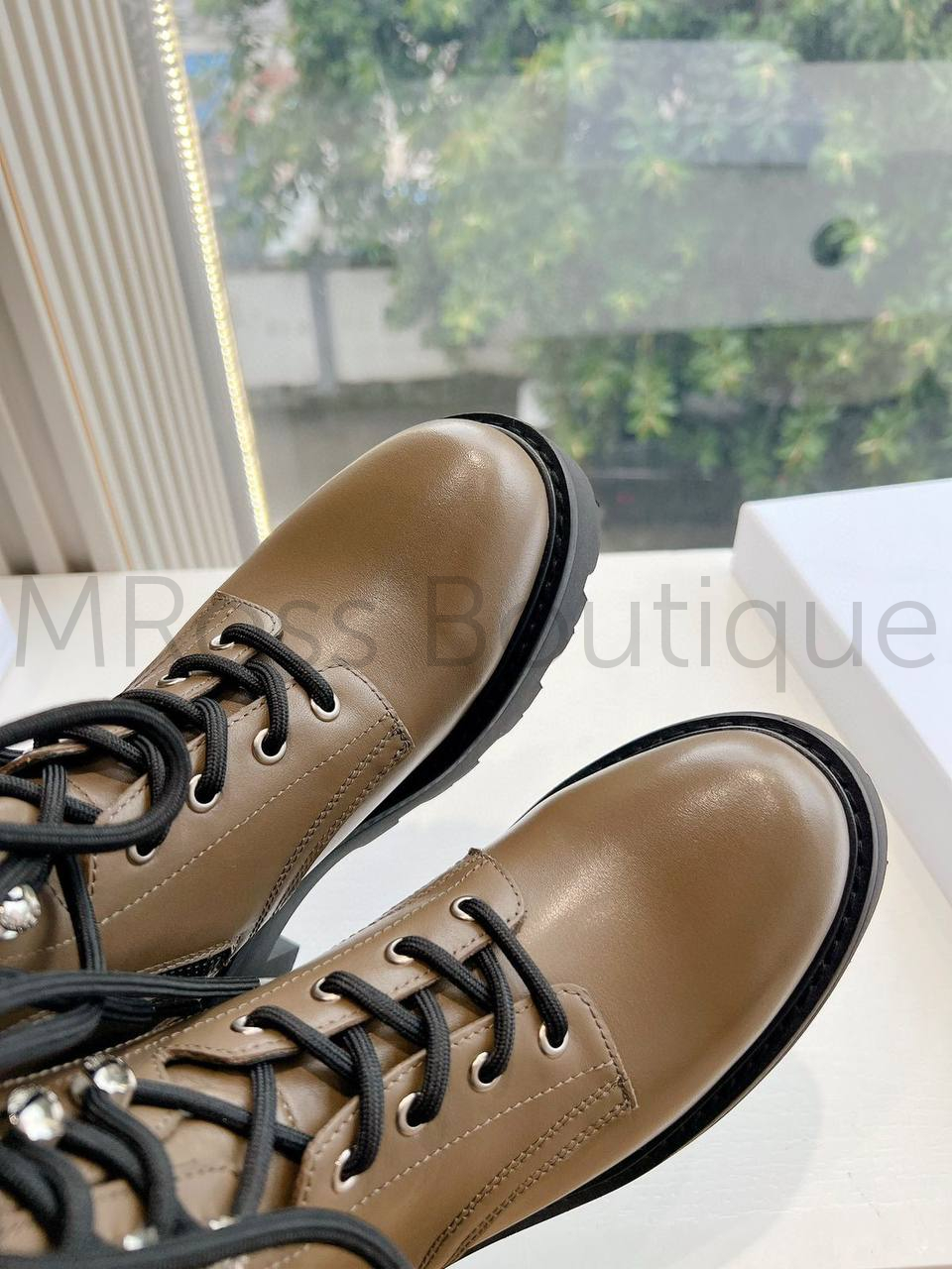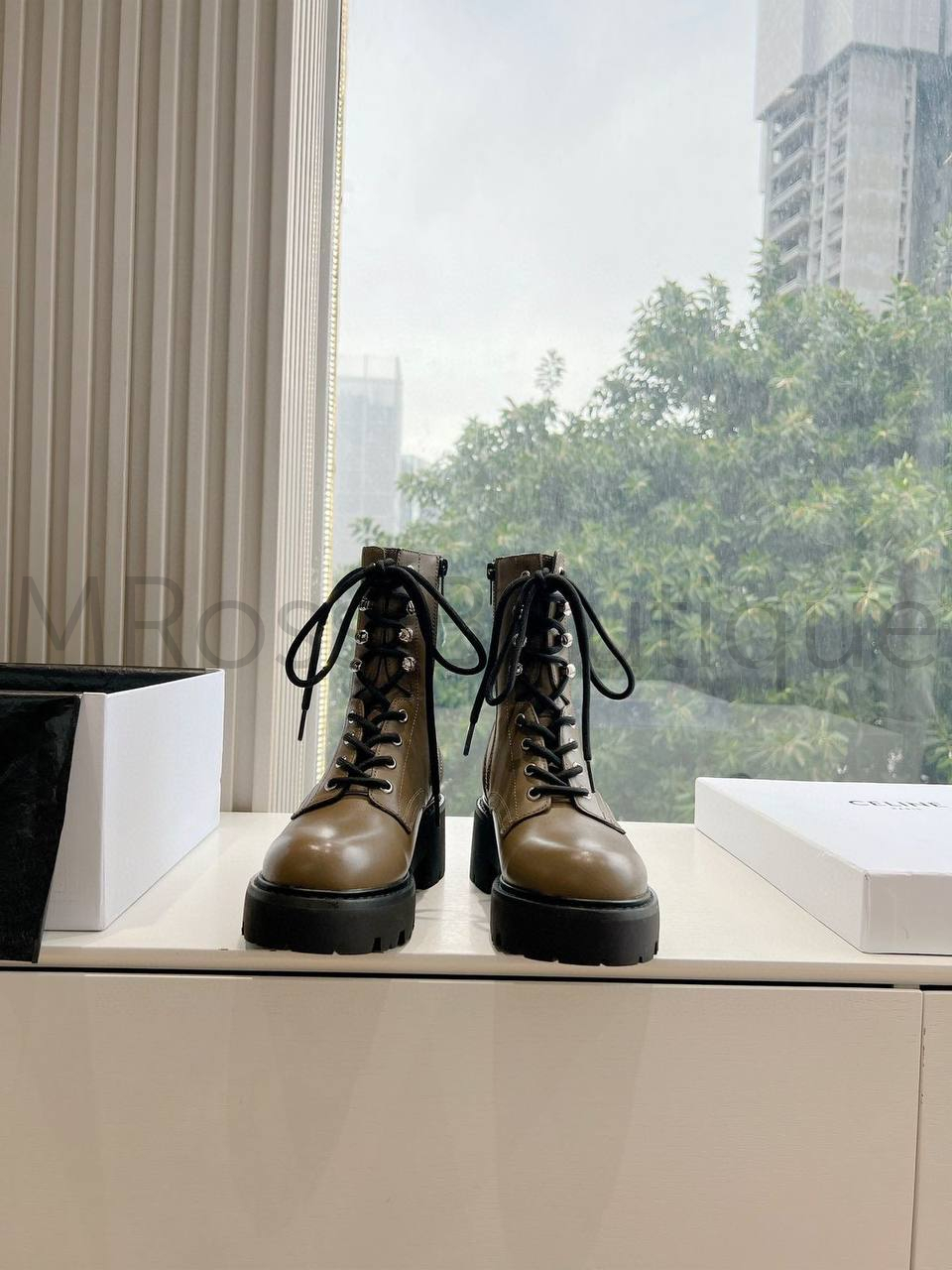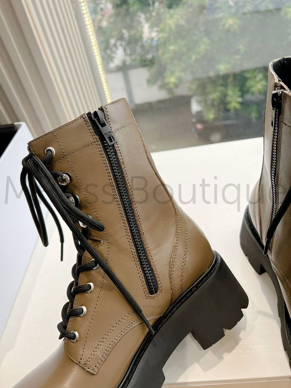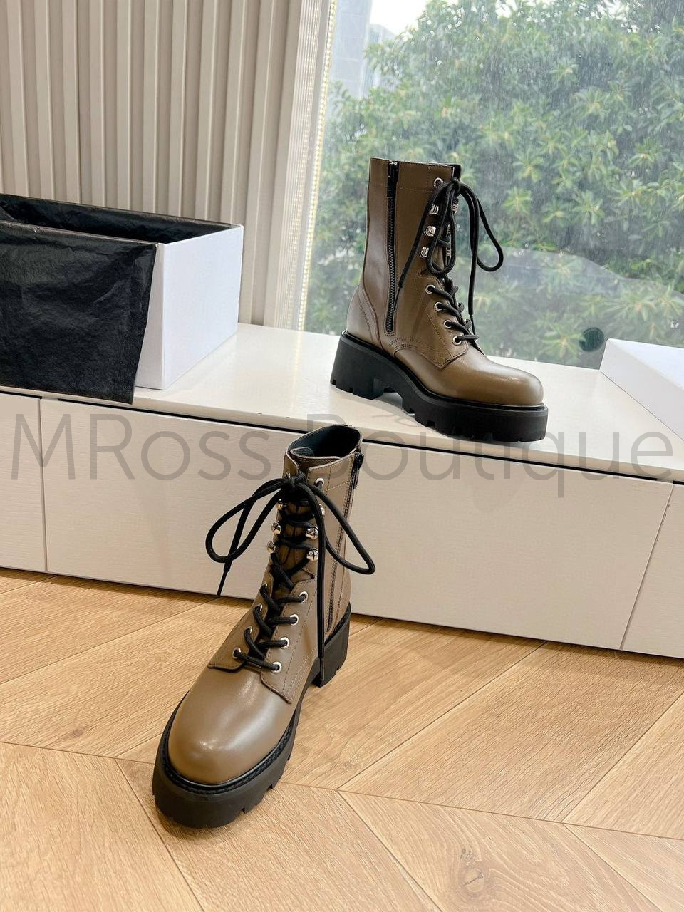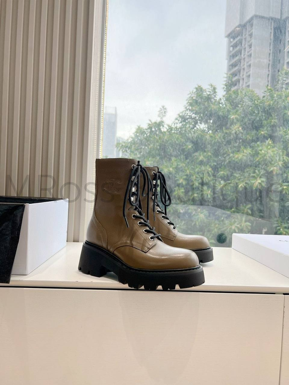 Женские кожаные ботинки Селин Триумф Рейнджерс (Celine Triomphe Rangers) премиум класса. Демисезонные ботинки цвета хаки на толстой подошве с брутальным визуалом благодаря высокой шнуровке станут отличной парой в осень. Для удобства модель имеет застежку молнию.