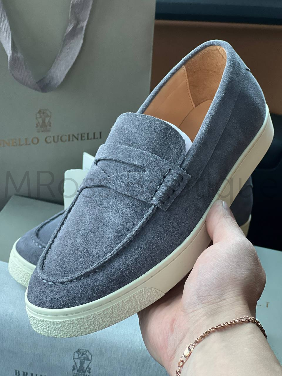 Мужские серые мужские пенни-лоферы Brunello Cucinelli (Брунелло Кучинелли) премиум класса - всегда актуальная модель в стиле кэжуал. Они будут уместными как на прогулке по городу, так и в офисе с нестрогим дресс-кодом. Мягкая плетеная замша создает трехмерный эффект на поверхности модели, а гладкая тонкая кожа внутри и низ подошвы из резины обеспечивают максимальный комфорт в ношении на весь день. Отточенный силуэт с миндалевидным мысом, легкая и тонкая конструкция лоферов Brunello Cucinelli добавляет особой изящности. Красивый серый цвет лоферов делает их актуальными и подходящими для любых образов.
