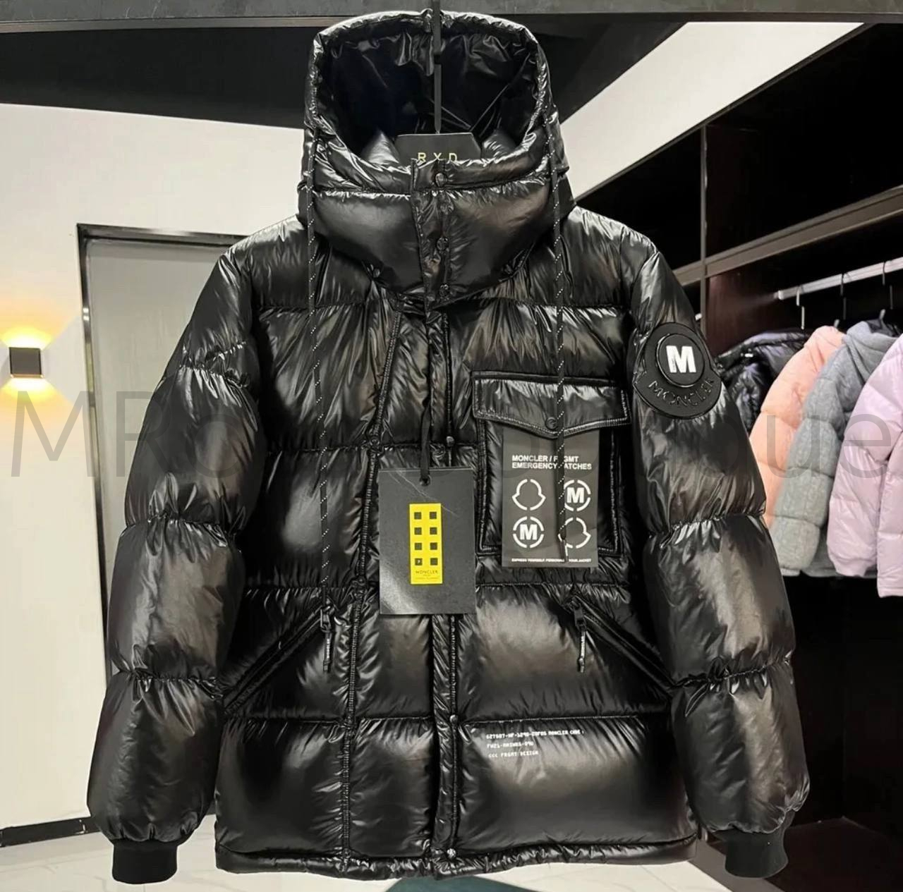 Мужская брендовая куртка премиум класса Moncler Anthemyx, выполненная из блестящего нейлонового лакового материала, является частью 7-й линии Монклер Frgmt Hiroshi Fujiwara, коллекции № 7 проекта Moncler Genius. Пуховик с наполнителем из пуха и стеганой ткани boudin имеет съемный капюшон, и манжеты на рукавах.