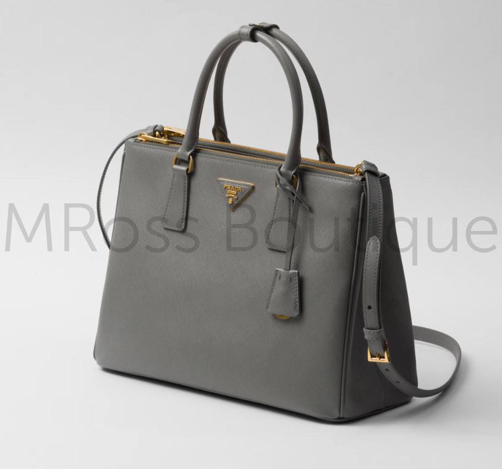 Серая сумка Prada Galleria (Прада) премиум класса, состоит из 83 предметов и представляет собой подлинное сочетание промышленной точности, и утонченного мастерства, которое может быть выполнено только вручную. Дизайн сумки чистый и элегантный, но при этом врожденно прагматичный, это эстетический язык, сочетающий форму и функциональность, сочетающий историю и современность. Сумка Galleria премиум класса, родившаяся из определения "неподвластная времени", стала визитной карточкой Прада в двадцать первом веке. Аксессуар, представленный в версии large, изготовлен из культового материала Saffiano - телячьей кожи, запатентованной Mario Prada, которая устойчива к царапинам и воздействию воды и отличается фактурой перекрестия.