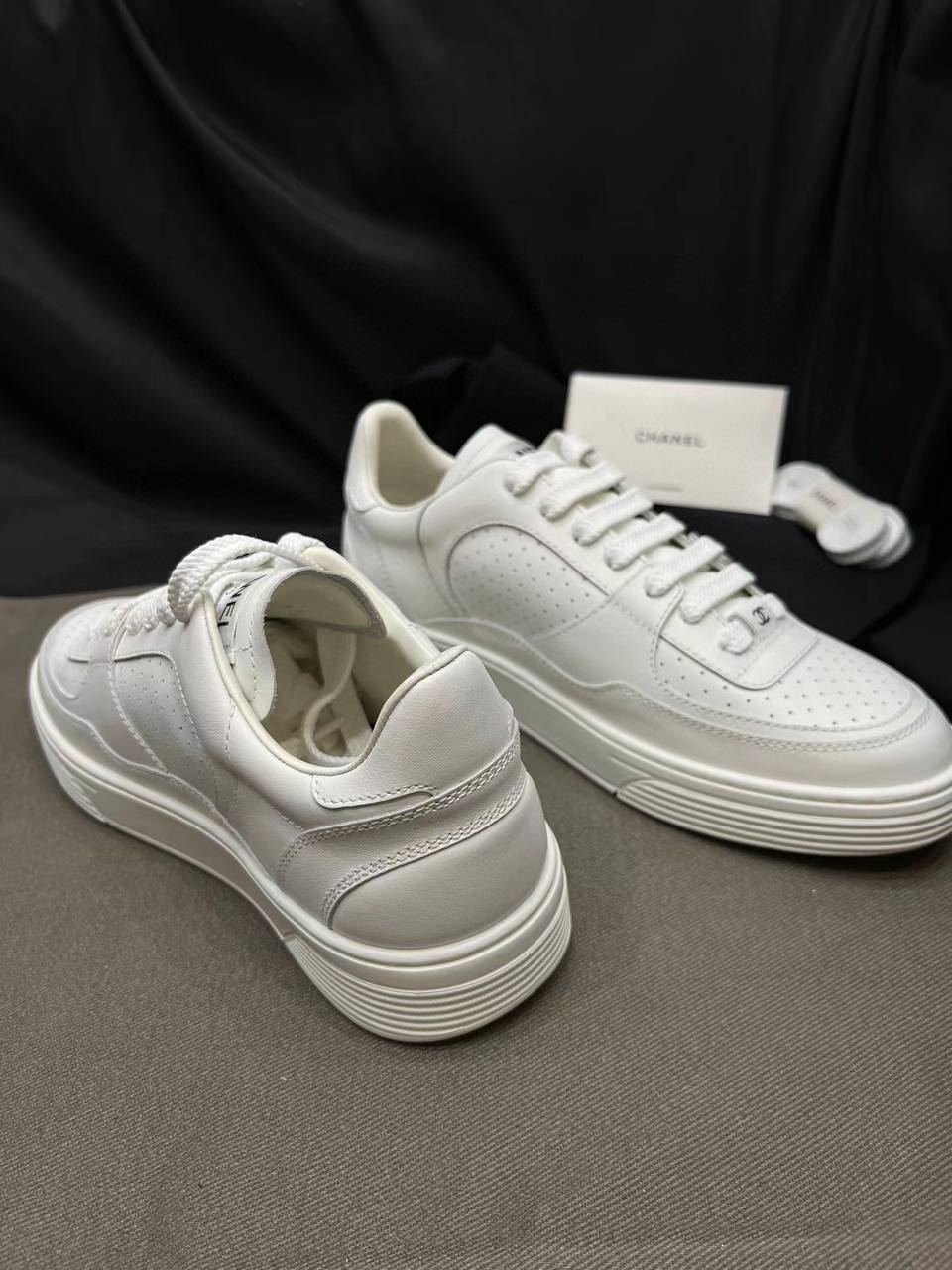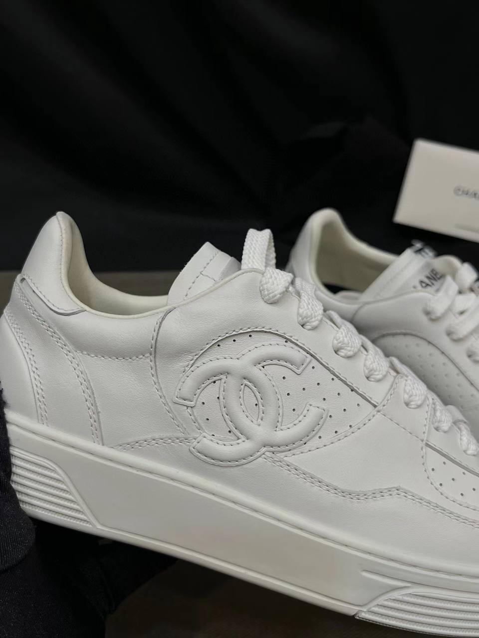 Женские кроссовки Chanel (Шанель) белого цвета с объемным логотипом премиум класса— воплощение элегантности и утончённой простоты. Модель выполнена из высококачественной кожи и украшена фирменным логотипом бренда сбоку. Классический силуэт в сочетании с современной мягкой подошвой обеспечивает комфорт на каждый день, а универсальный дизайн идеально сочетается с любым гардеробом.