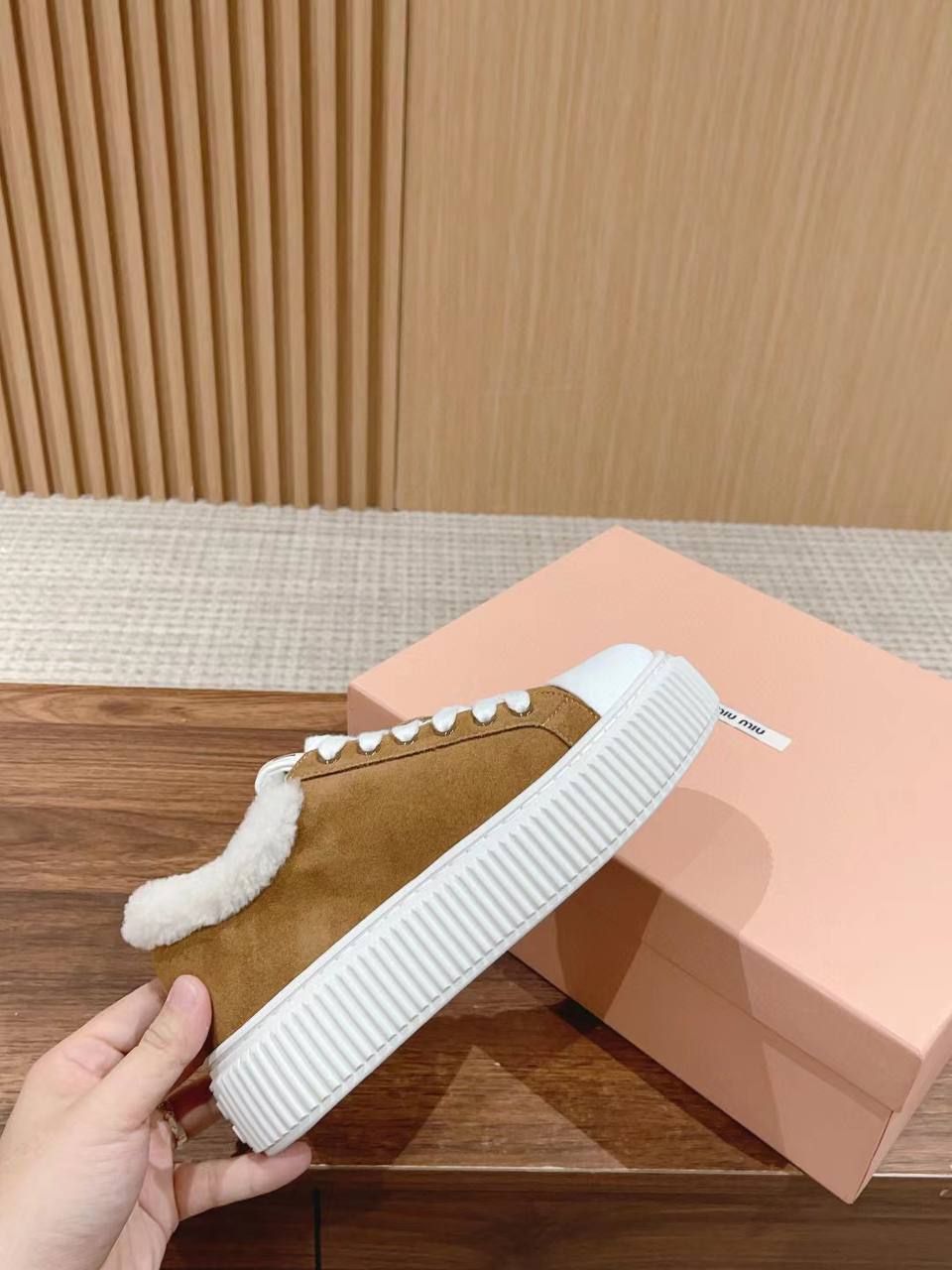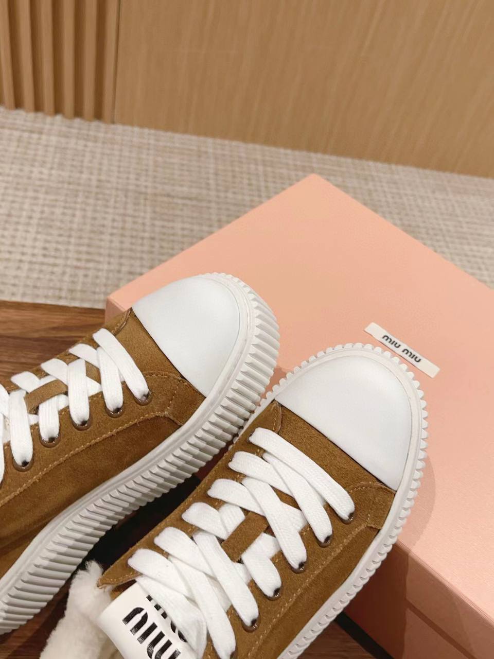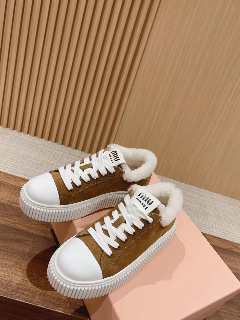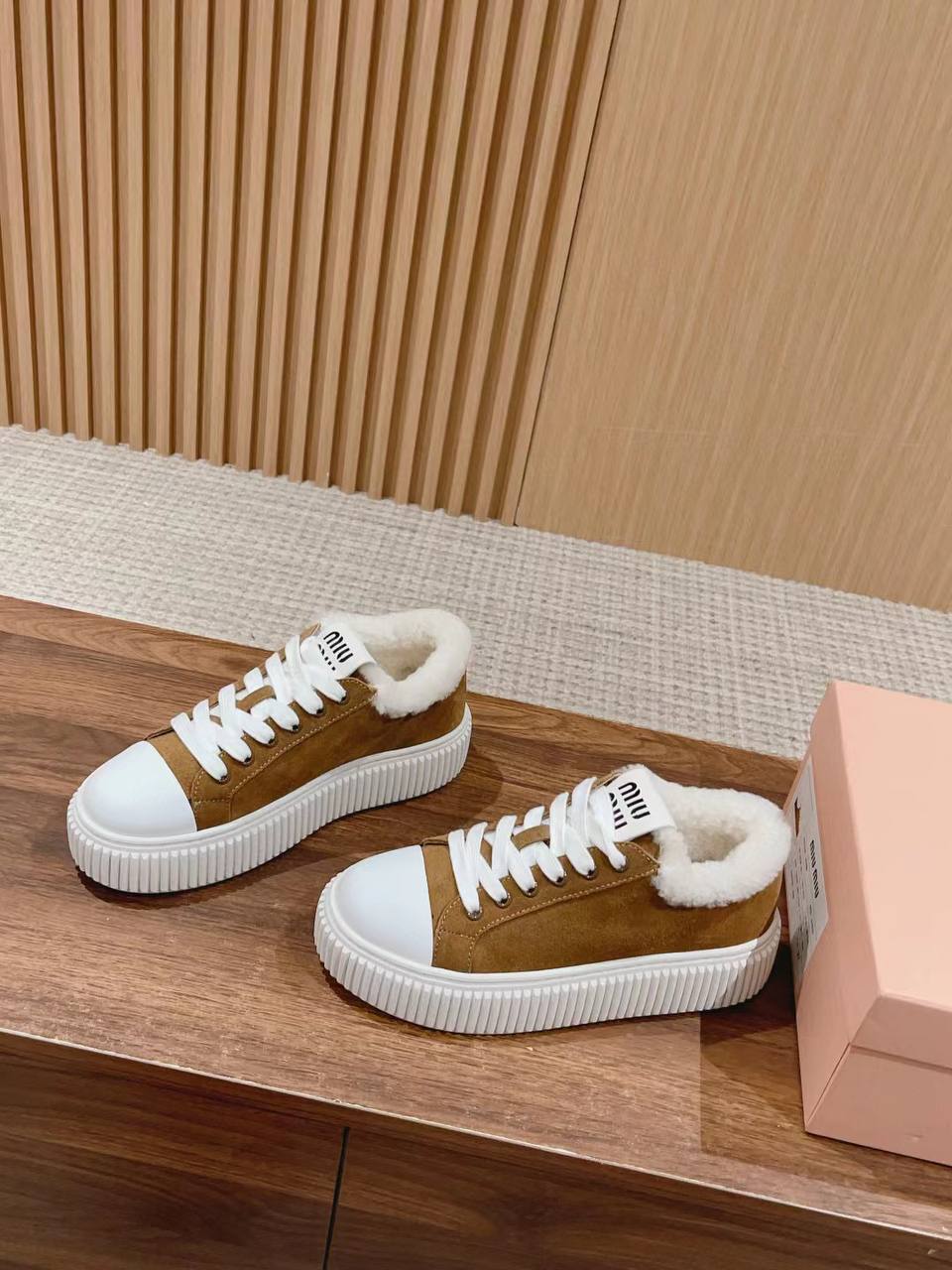 Женские кроссовки Miu Miu (Миу Миу) в коричневом цвете с мехом премиум качества — настоящее воплощение стиля и уюта, созданные для тех, кто ценит комфорт и модные акценты в каждом образе. Модель выполнена из качественных материалов с приятной мягкой внутренней подкладкой, которая дарит ощущение тепла и нежности при каждом шаге. Внешний вид сочетает в себе классический дизайн с современными деталями: белая массивная подошва, устойчивый силуэт и выразительные белые шнурки создают гармоничный и привлекательный образ.