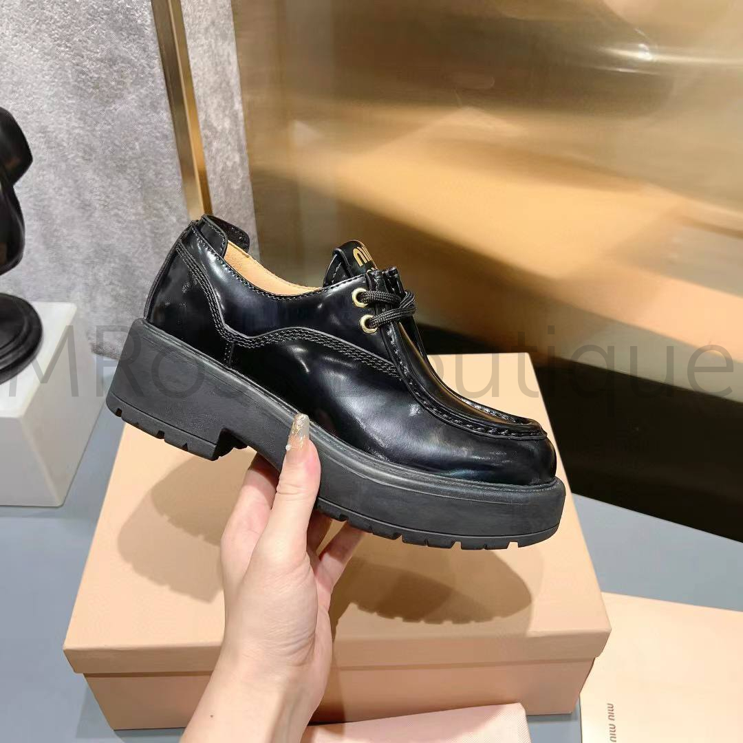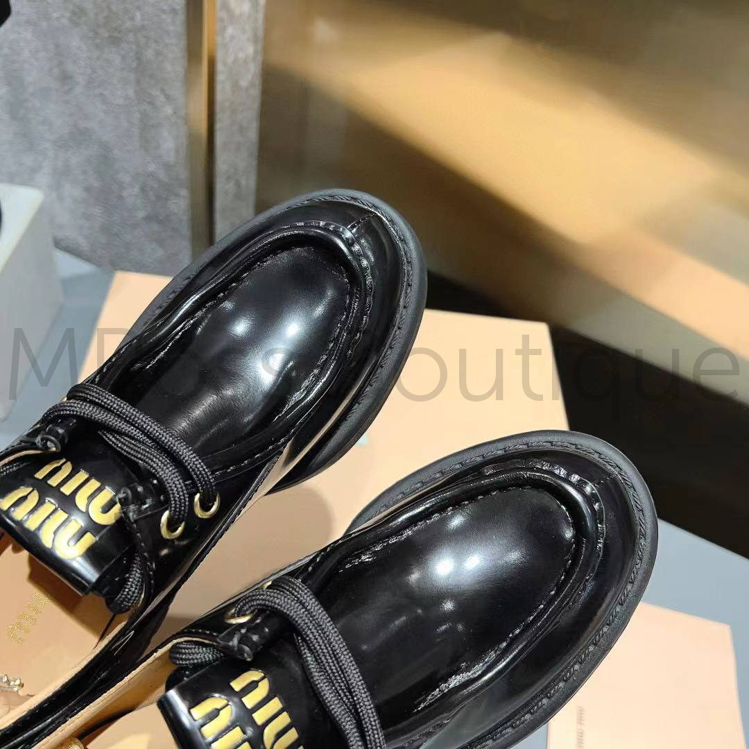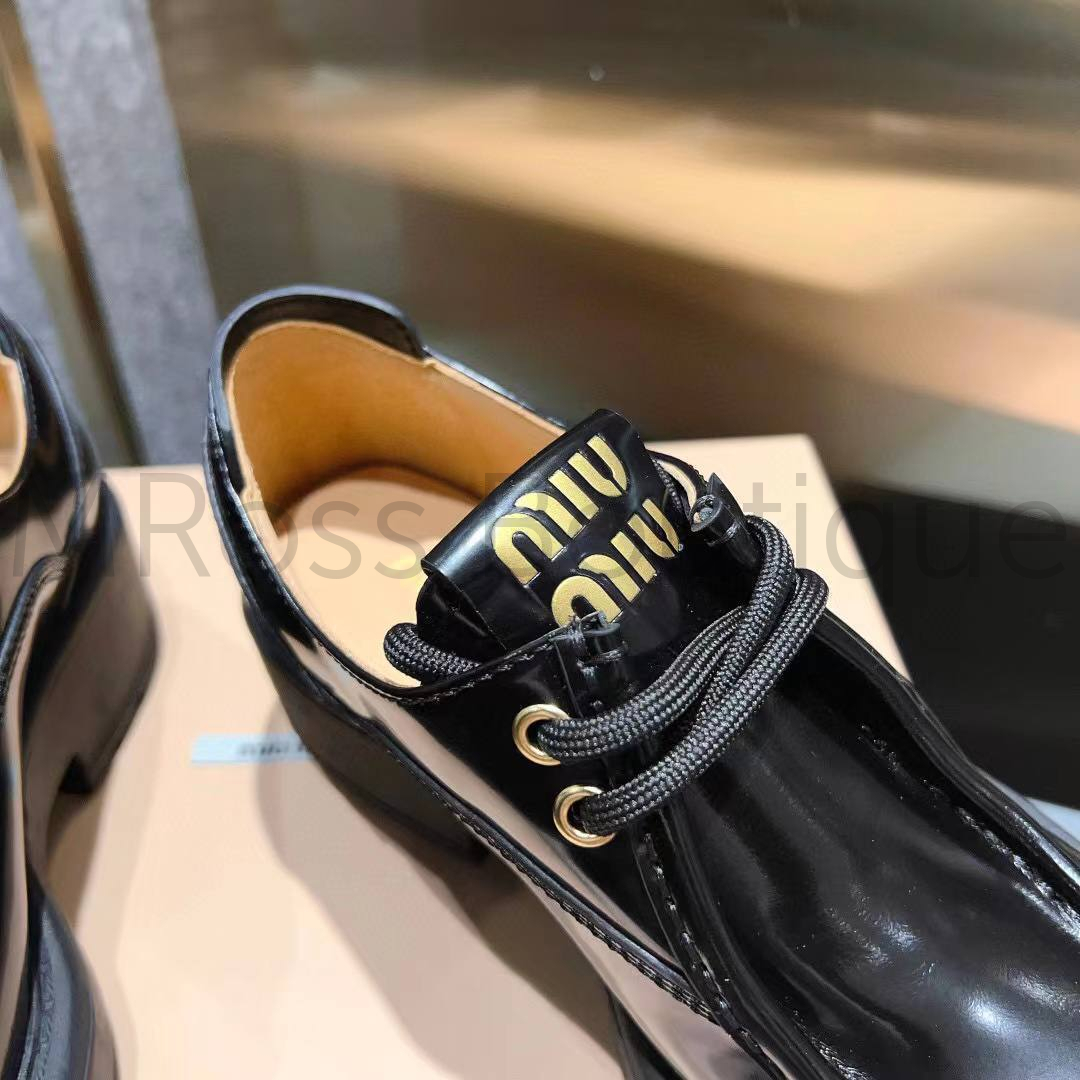 Женские лоферы Miu Miu (Миу Миу) из лакированной кожи в черном цвете премиум качества — воплощение утонченности и легкости. Выполнены из гладкой, высококачественной кожи, которая придает обуви элегантный и современный вид. Удобная посадка благодаря мягкой подкладке и толстой, устойчивой подошве обеспечивает комфорт в течение всего дня. Яркий акцент — брендовый логотип Miu Miu на язычке добавляет образу роскоши и узнаваемости.