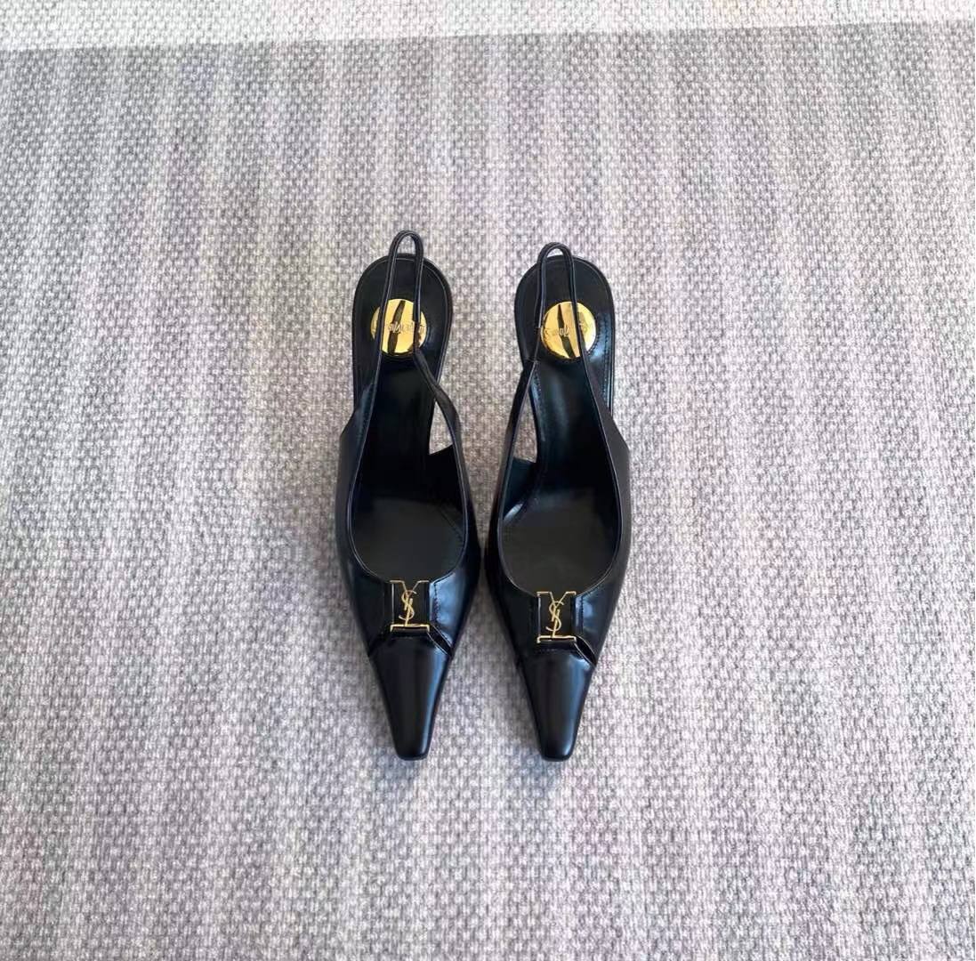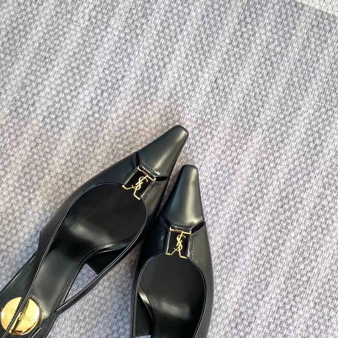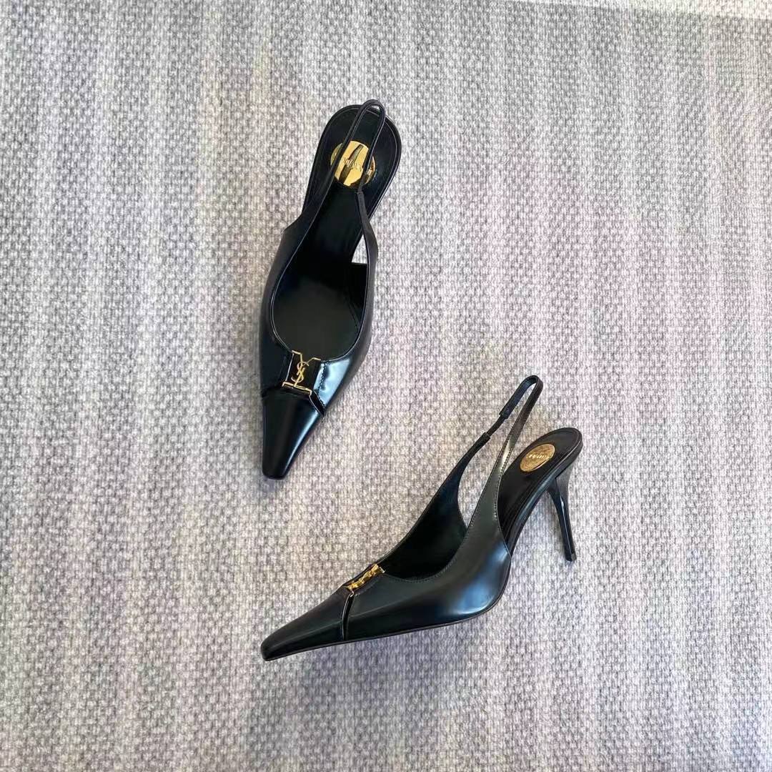 Женские туфли Yves Saint Laurent (Ив Сен Лоран) черного цвета с длинным носом премиум качества — воплощение элегантности и изящества, созданные для тех, кто ценит стиль и утонченность в каждом образе. Изготовленные из высококачественной кожи с гладкой, зеркальной поверхностью, они подчеркнут вашу индивидуальность и добавят изысканности любому наряду. Их утончённая форма с зеркальным острым носом и тонкой шпилькой создает идеальный баланс между строгой классикой и современными трендами. Золотая деталь с логотипом в центре придает обуви особый шарм и эксклюзивность, а аккуратный ремешок на пяточной части обеспечивает стабильность и комфорт при носке.